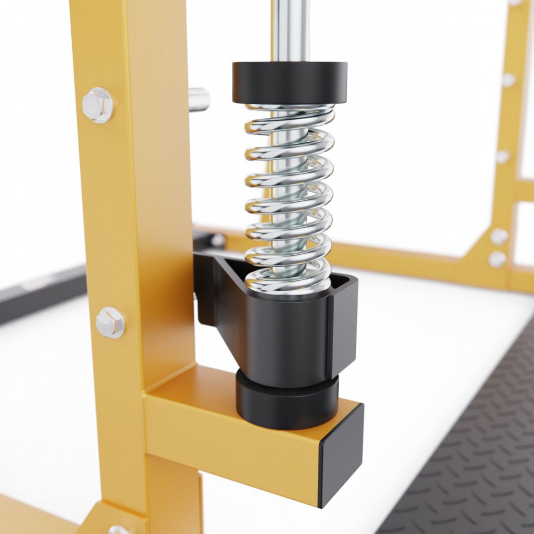 Тренажер имеет 9 уровней регулировки по высоте, что позволяет гибко настраивать рабочее положение под разные упражнения и рост спортсмена. Для дополнительных тренировок предусмотрен турник длиной88 смс максимальной нагрузкой до200 кг.