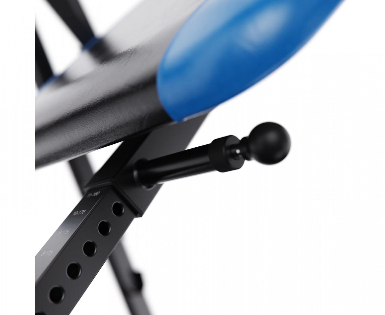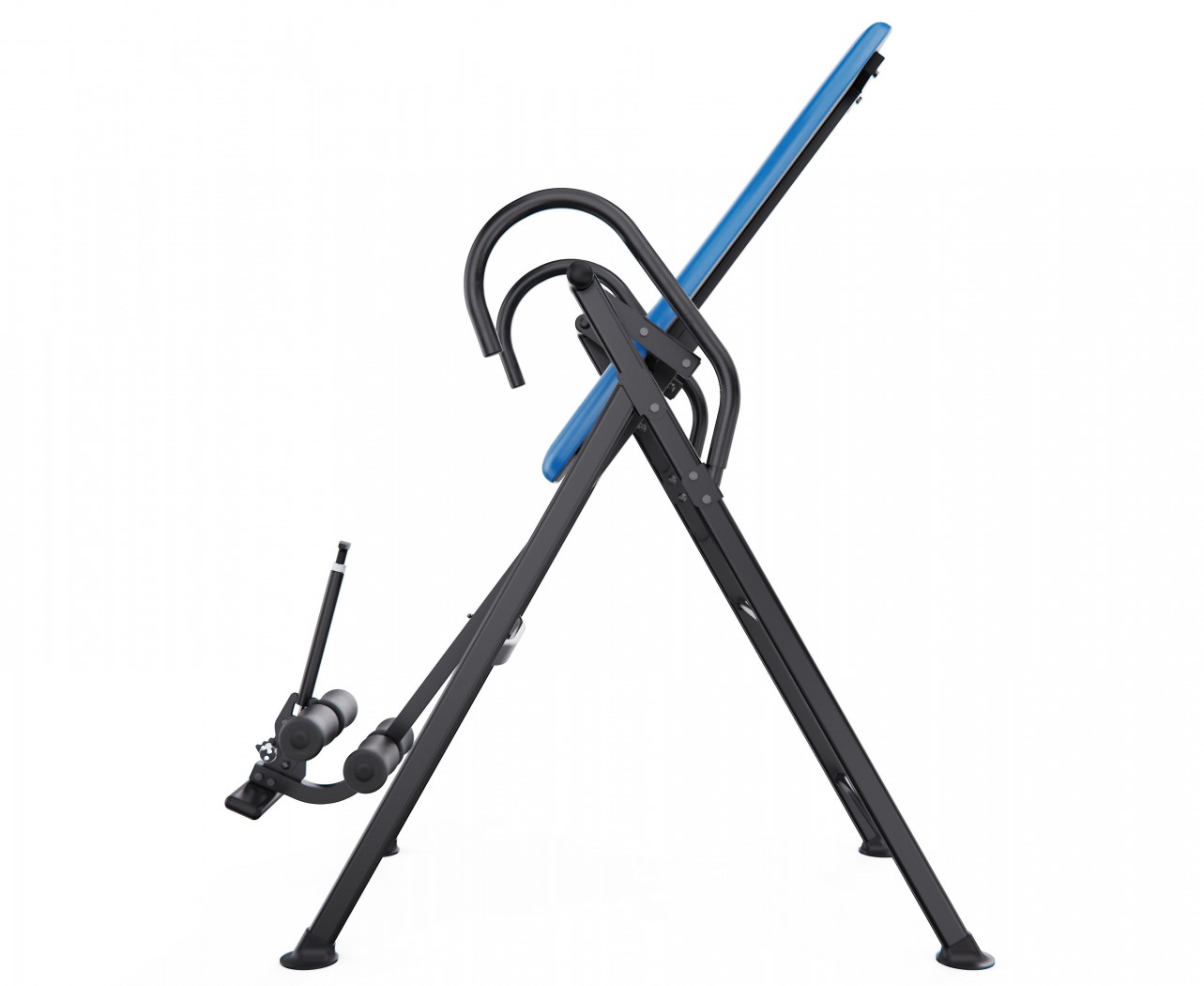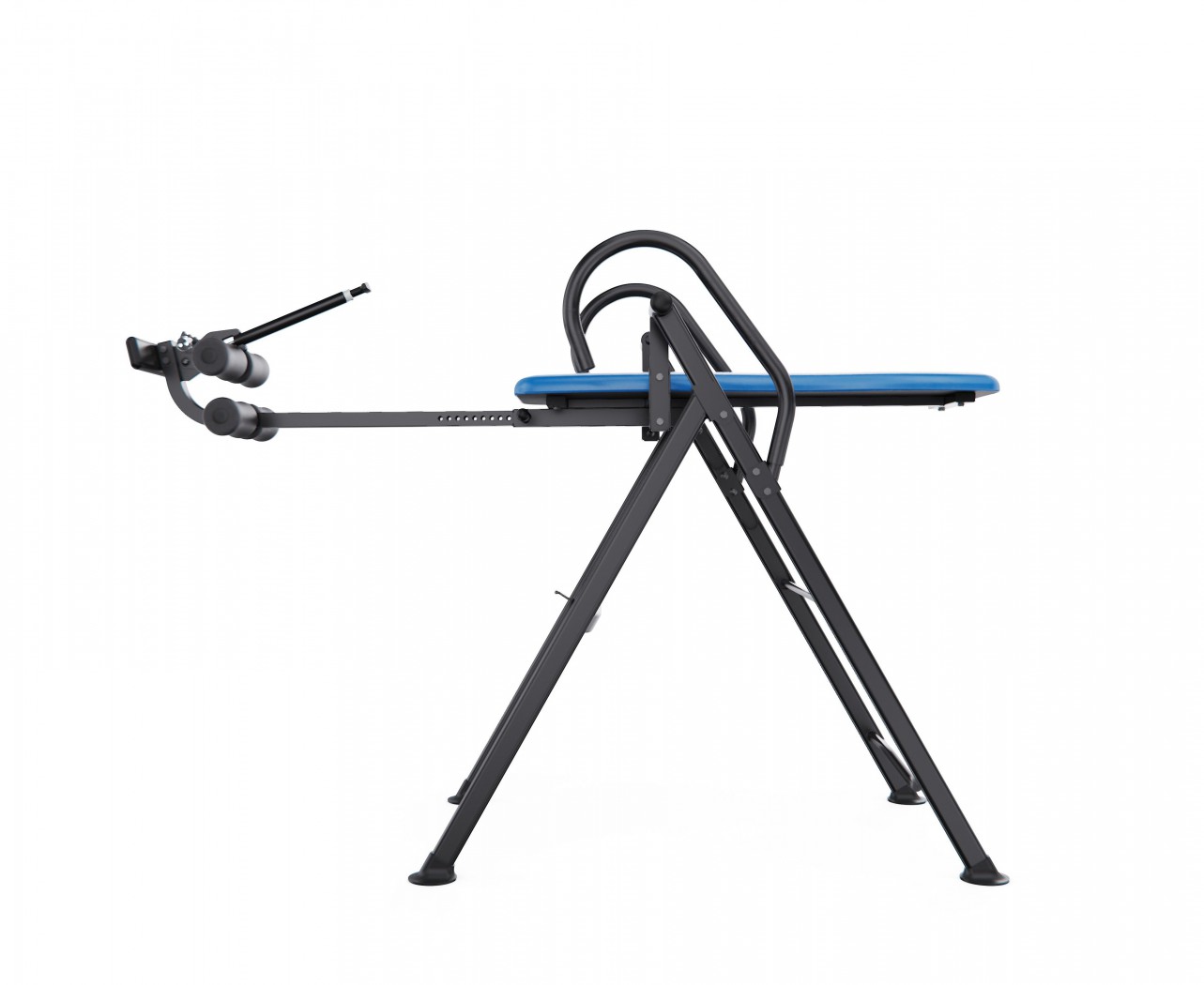Регулировка угла инверсии осуществляется с помощью задней планки с тремя фиксированными положениями: лёгкая, умеренная и усиленная инверсия. Без использования планки стол позволяет принять полностью вертикальное положение до 90 градусов и регулируется по росту пользователя от 155 до190 см.