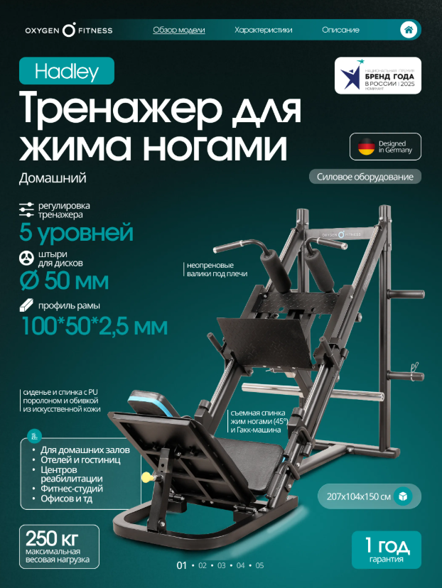 Жим ногами OXYGEN FITNESS HADLEY — это надежный и функциональный тренажер, предназначенный для эффективной тренировки мышц ног. С полукоммерческим назначением, этот тренажер идеально подходит для корпоративных фитнес-клубов, отелей, фитнес студий или частных домов. Его прочная конструкция с профилем рамы толщиной2.5 ммобеспечивает стабильность и долговечность, что позволяет сосредоточиться на тренировках без лишних забот. Тренажер предлагает выполнение двух основных упражнений: гакк и жим ногами под углом 45 градусов, что позволяет развивать силу и массу мышц ног. Эргономичное сиденье с наполнителем из PU поролона и обивкой из искусственной кожи обеспечивает комфорт во время тренировок, а 5 уровней регулировки спинки позволяют адаптировать тренажер под индивидуальные параметры пользователя. Жим ногами OXYGEN FITNESS HADLEY оснащен всем необходимым для эффективной тренировки. В комплект входят 4 штыря для дисков диаметром50 мми 2 замка для дисков, что обеспечивает надежную фиксацию веса. Ограничители и неопреновые валики добавляют дополнительный комфорт и безопасность во время тренировки. Спинка тренажера съемная и имеет размеры 70х40х17,5 см, а сиденье — 53,5х16,5х5 см, что позволяет легко настроить оборудование под свои параметры. Ключевые преимущества OXYGEN FITNESS HADLEY: • многофункциональность: возможность выполнения гакка и жима ногами под углом 45 градусов для комплексной тренировки мышц ног; • комфорт: эргономичное сиденье и продуманные размеры подушек для максимального удобства; • надежность: прочная стальная конструкция и качественные материалы обеспечивают долгий срок службы.