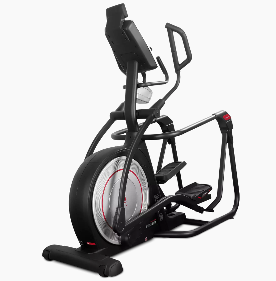 Конструкция тренажера: модель PE 510 FD отличается тяжелой рамой, подвесными педалями, усиленными узлами сочленения ПРУ, фиксированным шагом, меньшим количеством электронных блоков. Эти параметры обеспечивают высокую надежность конструкции в использование тренажера. Высококлассная эргономика и надежность обеспечивает комфорт и правильное положение пользователям в диапазоне допустимого роста от 155 до 220 cм, и весом до 160 кг. Качественная трансмиссия и «подвешенная» конструкция педалей без треков, роликов и лишних сочленений обеспечивают бесшумный и плавный ход тренажера. Мощная система сопротивления и технология движения ПРУ AirSwings™ эффективно распределяют нагрузку на всем цикле движения и обеспечивают плавное переключение уровней сопротивления. Наличие вентилятора обеспечивает полный комфорт и позволяет полностью сосредоточиться на достижении желаемого результата.