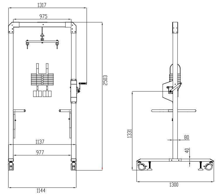 - Подвес легко перемещается на транспортировочных роликах. Ролики имеют надежные стопоры.
