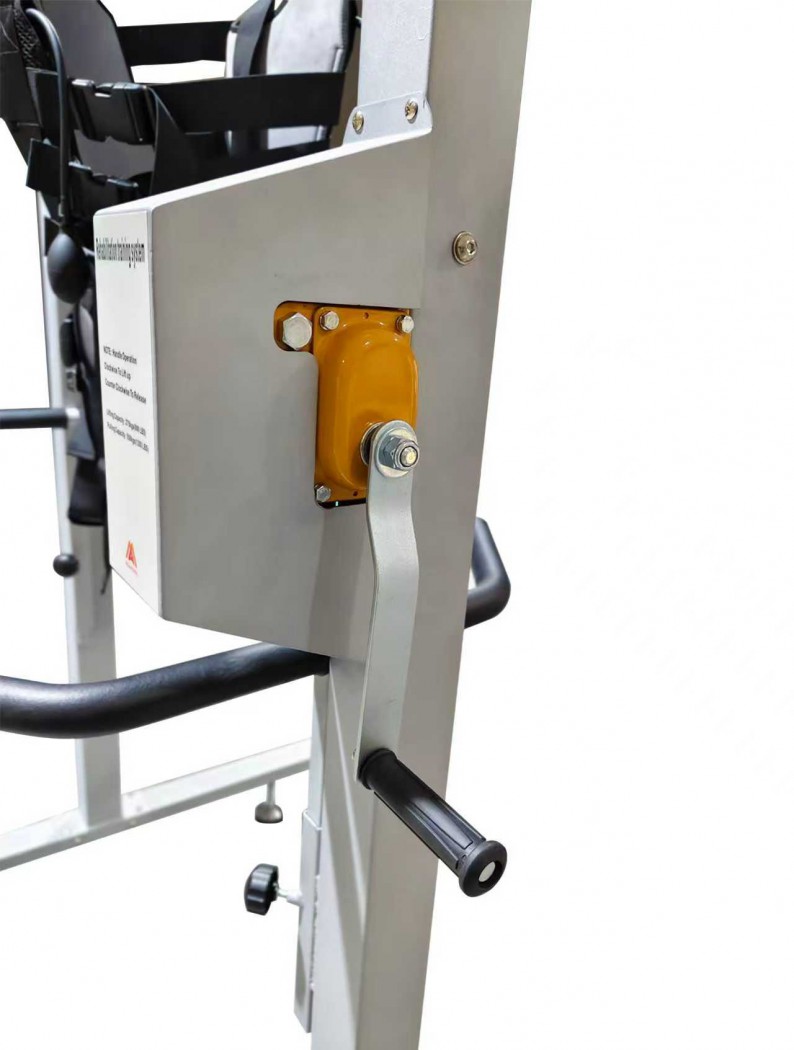 - Подвес оснащен ручным (механическим) приводом для разгрузки веса пациента. С его помощью на ноги и позвоночник тренирующегося можно снизить или полностью избавить от тяжести собственного веса.