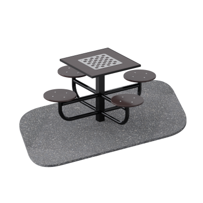 Модель объединяет стол и интегрированные скамейки в единую конструкцию, что обеспечивает устойчивость, безопасность и удобство использования. Такое решение формирует полноценную игровую зону для шахмат, шашек и других настольных игр.