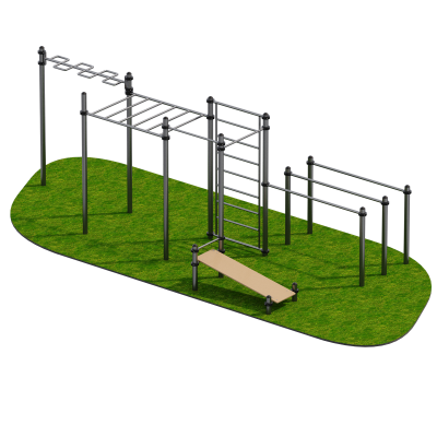 Комплекс объединяет несколько функциональных элементов: перекладины для подтягиваний, брусья и лежак для упражнений на пресс. Турник позволяет выполнять подтягивания различными хватами, развивая широчайшие мышцы спины, грудные мышцы, бицепсы и трицепсы. Брусья из трубы диаметром 43 мм предназначены для отжиманий и статических упражнений, эффективно укрепляющих мышцы верхнего плечевого пояса.