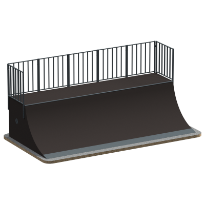 Высота 1500 мм без ограждения обеспечивает большую амплитуду движения по сравнению с моделями меньшей высоты. Это делает рампу подходящей не только для начинающих, но и для райдеров среднего уровня, стремящихся к прогрессии техники. Горизонтальные площадки с ограждением обеспечивают безопасный выход и подготовку к следующему заезду.