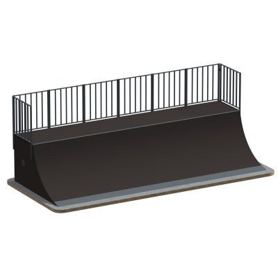 Высота 1500 мм без ограждения обеспечивает большую амплитуду заезда и делает элемент подходящим для райдеров среднего и продвинутого уровня. Ширина 2883 мм формирует комфортную рабочую зону для маневрирования и выполнения связок с другими модулями скейт-парка.