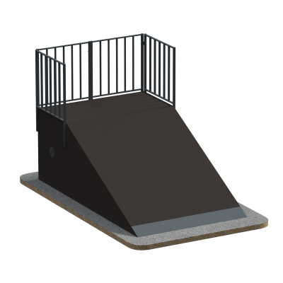 Высота 1500 мм без ограждения создаёт более мощный разгон по сравнению с моделями стандартной высоты. Плоский угол наклона обеспечивает мягкое и контролируемое ускорение без резких перепадов, что особенно важно при подготовке к вылетам, заездам на радиусы, фанбоксы и другие элементы скейт-парка. Горизонтальная площадка служит зоной стабилизации и подготовки к следующему манёвру.