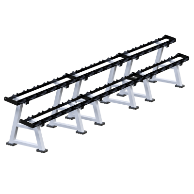 Гантельная стойка Sabirgym SG103 предназначена для хранения до 18 пар гантелей. Двухъярусная компоновка обеспечивает удобный доступ к инвентарю по всей длине стойки и позволяет эффективно организовать силовую зону при большом количестве гантелей.