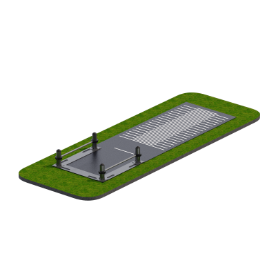 Стойки крепятся к основанию при помощи болтового соединения. Основание комплекса состоит из трех разборных металлических листов толщиной 5 мм, что обеспечивает устойчивость конструкции и равномерное распределение нагрузки.