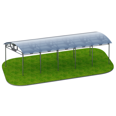 Большая площадь конструкции позволяет разместить под навесом несколько тренажеров или спортивных станций, что делает модель особенно эффективной для общественных спортивных площадок.