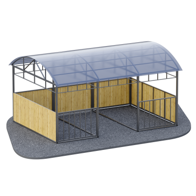 Крыша выполнена из поликарбоната толщиной 6 мм. Этот материал обладает высокой прочностью, устойчивостью к ультрафиолетовому излучению и долговечностью, что делает его идеальным для использования в уличных конструкциях.